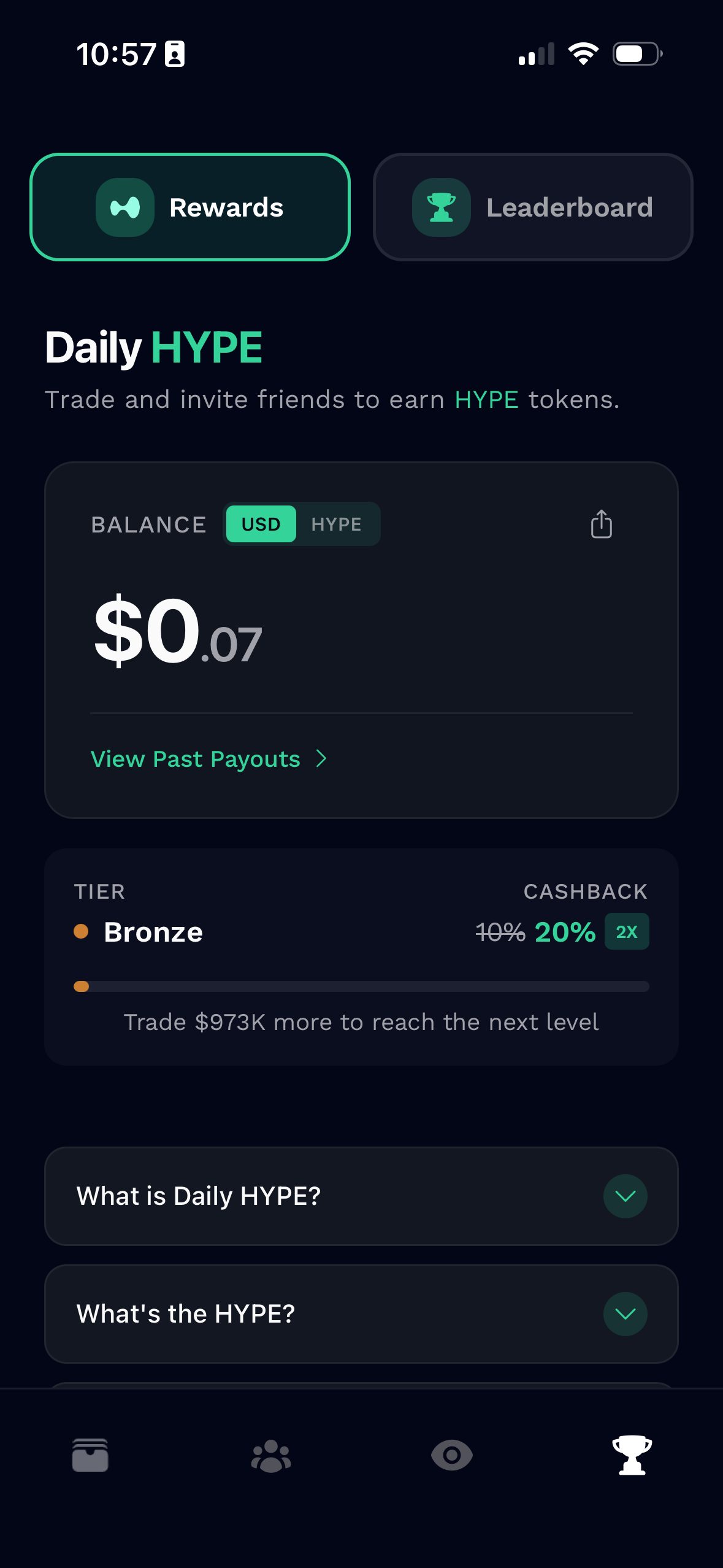 Every trade earns HYPE tokens.